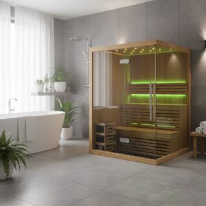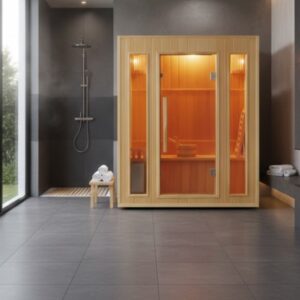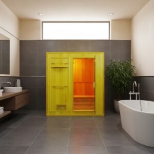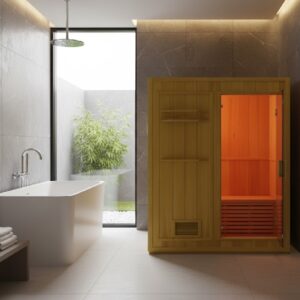 سونای خشک خانگی یک فضای کوچک و خصوصی است که با چوب ترمو طراحی شده و برای آرامش و بهبود سلامت استفاده میشود. این سونا با استفاده از هیترهای مخصوص و سنگهای داغ، دمای بالایی تولید میکند که به دفع سموم از بدن، افزایش گردش خون و کاهش استرس کمک میکند. طراحی آن معمولاً شامل نیمکتهای چوبی، درب شیشهای و هیتر قابل تنظیم برای راحتی بیشتر است.